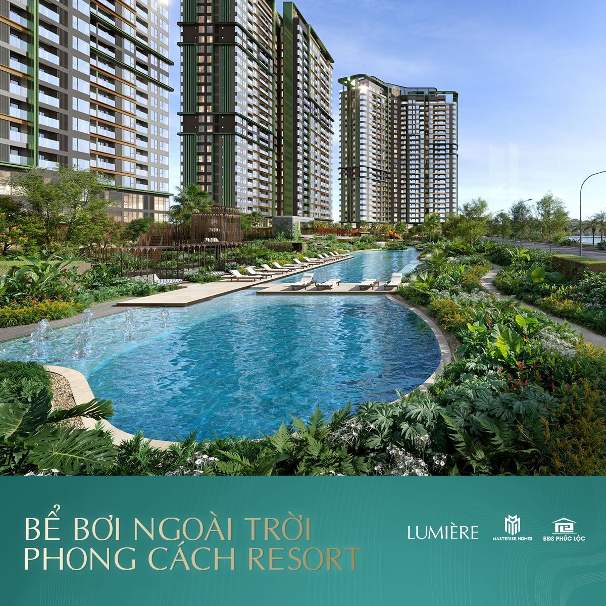 Không chỉ dừng lại ở kiến trúc, Lumière Bayfront còn chú trọng trải nghiệm sống của cư dân. Bể bơi ngoài trời phong cách resort được bố trí kề khối tháp, mang đến không gian nghỉ dưỡng đẳng cấp ngay trong nội khu. Tại đây, mỗi ngày đều có thể bắt đầu bằng một buổi sáng tràn đầy năng lượng bên làn nước trong xanh và kết thúc bằng những giây phút thư giãn đầy cảm hứng.
