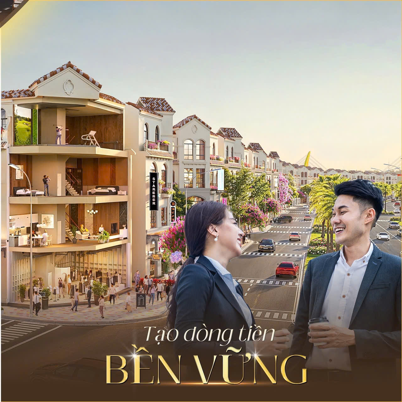 Nhờ nằm trên trục đại lộ thương mại sầm uất, Royal Boulevard là địa điểm lý tưởng để phát triển nhiều mô hình kinh doanh khác nhau. Các chủ sở hữu có thể dễ dàng vận hành những loại hình dịch vụ như quán café, boutique thời trang, showroom trưng bày, studio sáng tạo, văn phòng giao dịch hoặc cửa hàng dịch vụ cao cấp. Không gian mặt phố rộng rãi cùng lưu lượng khách ổn định giúp gia tăng khả năng tiếp cận khách hàng và nâng cao hiệu quả kinh doanh.