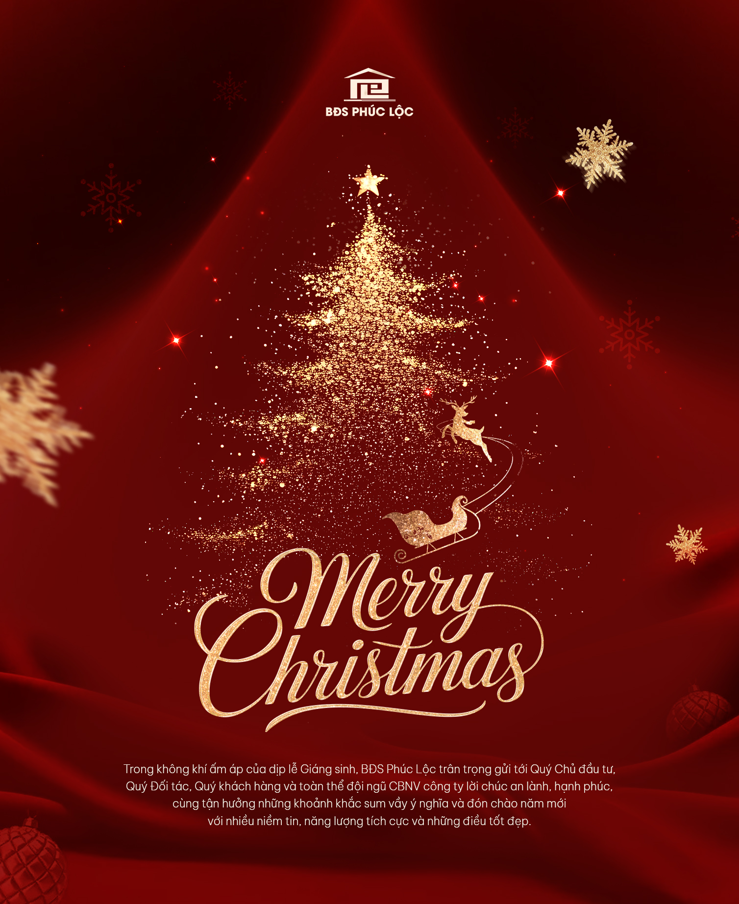 Trong không khí rộn ràng của mùa lễ hội cuối năm, BĐS Phúc Lộc trân trọng gửi tới Quý Đối tác, Quý Khách hàng cùng toàn thể CBNV lời chúc Giáng sinh an lành, hạnh phúc và trọn vẹn yêu thương.